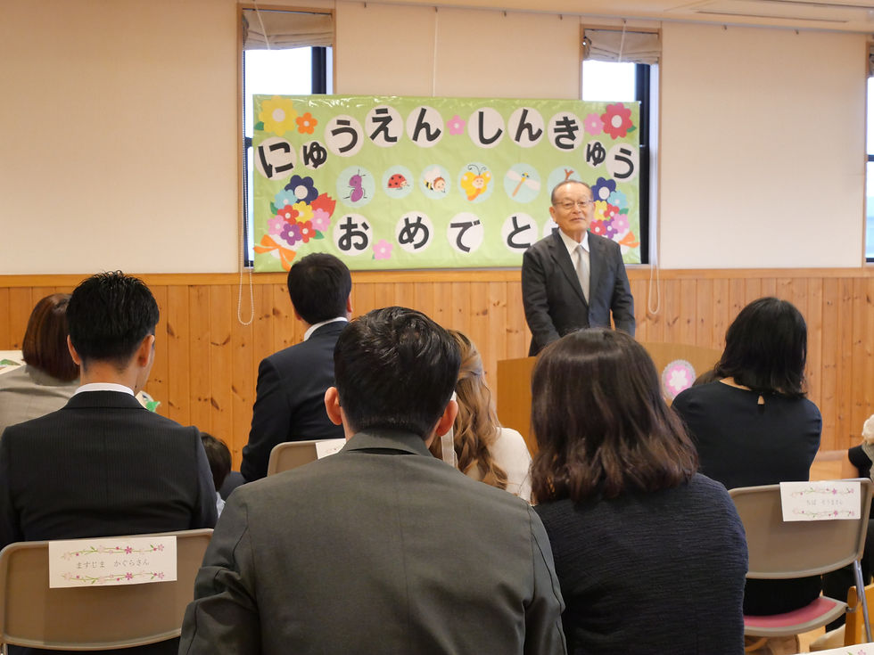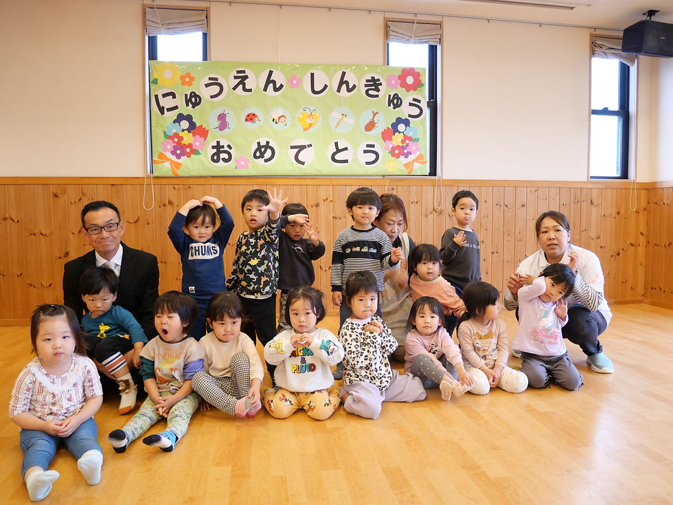 入園式では理事長の話、園長の話、職員紹介や新入園児紹介があり照れているような表情やキョトン…とした表情などが見られました。明日からみんなと過ごせることを楽しみにしているよ☆